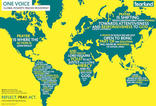 Of the various quotes featured on TearFund's 'Reflect, Pray, Act' poster, my favourite is from CB Samuel: "A prayer in which we are not open to being part of the solution will never be answered". God is not our gofer - He helps us, encourages us, supports us, wants us to grow and wants us to take responsibility for our actions. The Church is meant to be Jesus' hands and feet, heart and mouth.